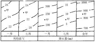 2、单选题  读图,甲地的月均温及降水量的分布图,分析判断问题。