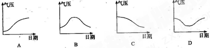 2、单选题 下图表示冷锋过境前后气压变化曲线的是