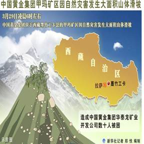 2013年3月29日6时左右,位于中国黄金集团甲玛矿区内的墨竹工卡县(位置见下图)普朗沟泽日山发生山体自然塌方,塌方长3千米、塌方量约200余万方,83名工人被埋。