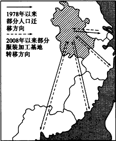 (1)分析图示服装加工基地转移和人口迁移的原因。