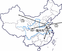 宿州市的留守儿童问题,主要是由大量农民工流动而引起的,图中最能说明这一问题的箭头是: