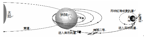 5、单选题 读图,北京时间2010年10月26日21时45分,嫦娥二号卫星成功进入了远月点100公里、近月点15公里的月球虹湾成像轨道,为在虹湾区拍摄图像做好准备。回答下题。