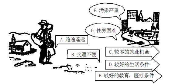 (4)大量农村人口迁入城市,既积极地推动了城市的_______发展,同时也给城市的____? ____造成巨大的压力。