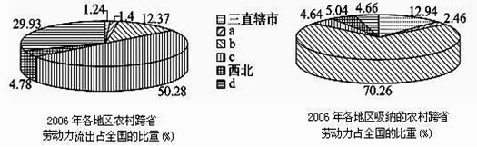 3、单选题 读我国2006年跨省劳动力流出、流入饼状图,图中b地区是