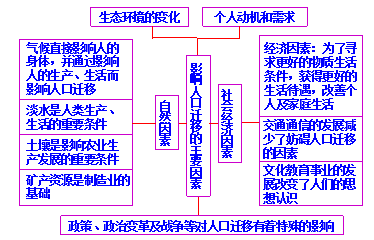 (1)材料一、二反映出的影响人口迁移的因素有哪些?