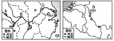 (5)甲河同乙河相比,流域面积广,河流水量大,汛期长,一年四季均可通航,随着三峡水库蓄水,通航条件改善,通航能力强,通航里程长,加之流域内人口密集、经济发达、资源丰富,中国成为“世界工厂”,对外贸易量日益加大,水运又具有价格低、运量大等优势。