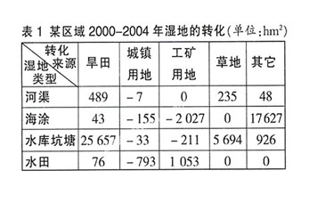 注:表中数据正值表示正向转化——湿地面积增加,负值表示逆向转化——湿地面积减少。