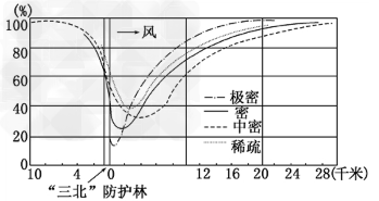 2、单选题 下图为不同密度防护林对降低风速的效果图。读图,回答1—2题。