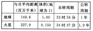 【小题2】根据下表资料判断,火星与地球相比(    )
