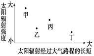 【小题1】图中甲、乙、丙、丁四地太阳辐射最强和最弱的分别是( )