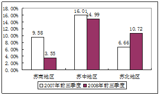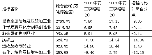 材料一?江苏省2008年前三季度部分行业综合能耗增幅变动情况表