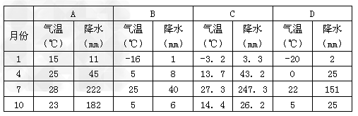 3、单选题 “我国四个不同区域(海南岛、黄淮地区、东北平原和西北内陆)某地的部分月份气温和降水统计表。”读表后回答1—4题。?