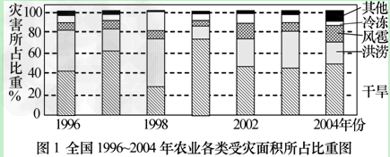 参考答案:(1)我国农业气象灾害种类多样,每年均有不同程度地对我国农业生产造成损害;其中以干旱灾害和洪涝灾害最为严重