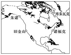 (1)朱诺位于太平洋东岸,终年受暖流和西风影响,并且科迪勒拉山系阻隔冷空气侵袭朱诺,而库朱瓦克位于大西洋西岸,受寒流影响大,并且受冬季风影响大。(每点2分,共8分)