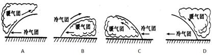 小题1:下列四幅图中,正确表示冷锋天气的是(?)