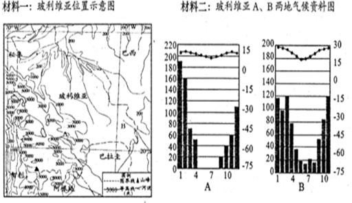 (1)结合材料简述玻利维亚地形特征。(2分)