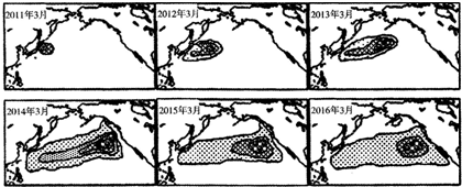 4、单选题 下图“2011年日本地震海啸后形成的巨型垃圾海上漂移示意图”。读图完成下列各题。