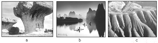 (4)下图中最有可能在E地拍摄的照片是______,该地貌景观形成的主要地质作用是____________。