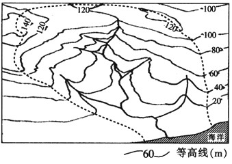 1、单选题 读等高线地形图,回答1~2题。