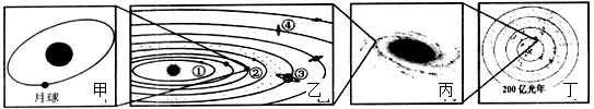 5、单选题 下图示意天体系统的四个层次。读图完成下列各题: