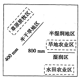 2.半干旱地区多是草原牧区,湿润半湿润地区多是农业区, 这反映出地理环境影响着区域的发展方向。所以本题选择C选项。