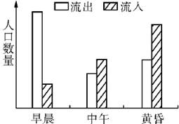 3、单选题 图为城市某功能区工作日内不同时段的人口流动状况示意图,由此判断该功能区是