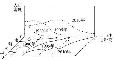 1.有关2010年的叙述正确的是2.2010年,c地人口密度大于市中心,原因最可能是