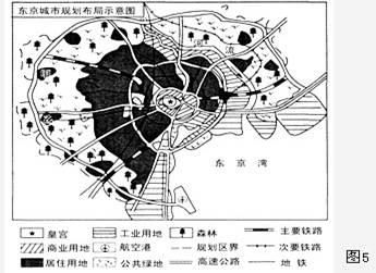 1、单选题 图为“东京城市规划布局示意图”,读图完成以下各题。
