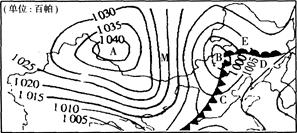 点评:本题难度不大,属于基础性试题,学生应在平时的学习中加强对基础知识点的落实,解题的关键是能从图示的等压线分布判断锋面性质和天气变化特征、风向等内容。