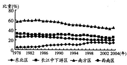 1、单选题 读我国四个水稻主产区水稻播种面积占全国总播种面积的比重变化统计图,完成下列问题。