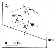 2、单选题 读某大陆西岸部分区域图(下图),图中虚线为等高线。回答下列各题。