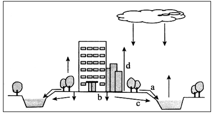 在城镇建设中,提倡用透水材料铺设“可呼吸地面”代替不透水的硬质地面。采用“可呼吸地面”之后,图中的四个环节的变化符合实际的是