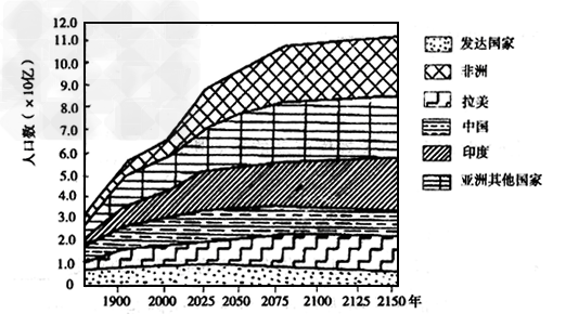1.按图推算,预计2050年的世界人口数和发展中国家的人口数分别将达到