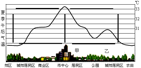 (2)由市中心向郊外呈波浪式降低;在植被覆盖率低的地方,气温较高,植被覆盖率高的地方,气温较