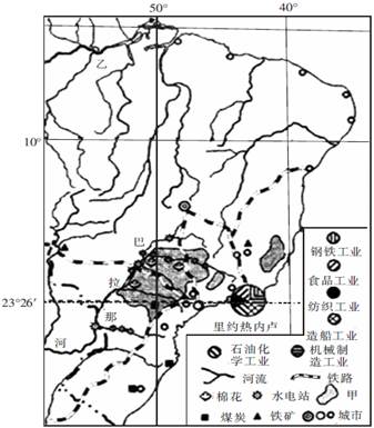 (3)位于巴西高原东南部,海拔适中;气温适宜,降水丰富;土壤肥沃;靠近大西洋和巴西的主要工业城市,工业发达;交通便利;市场广阔。(合理即可,对1点得2分,对3点得6分)