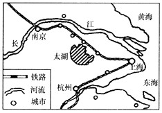 1、综合题 2010年上海世界博览会的主题是"城市,让生活更美好"。下图为长江三角洲地区示意图,读图完成下列问题。