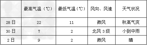 2、单选题 ?下表为株洲市2011年11月28日至12月2日天气信息,据此回答1~2题。