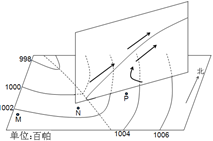 4、综合题 下图为北半球某地区近地面气压场中锋面天气示意图。读图完成下列问题: