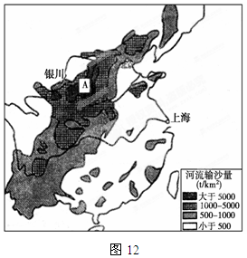 4、综合题 读我国部分区域水土流失状况分布示意图(图12),回答下列问题。(6分)
