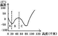 小题1:下图中正确表示大气层气温垂直变化的曲线是(?)