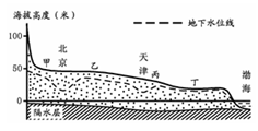 本题解析:图中自北京至天津地下水位有起伏波动,城市处地下水位最低,是城市抽取地下水造成的现象;进而可以引发地表沉降、地面建筑物塌陷。
