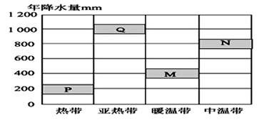1、单选题 下图中P、Q、M、N为世界四个不同区域的年降水量示意图,回答下列小题。