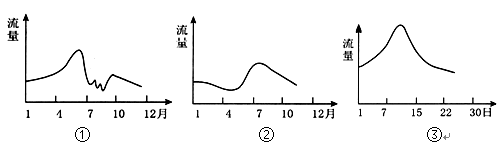小题2:若③为我国珠江8月的流量变化示意图,造成该河流量大增的自然因素最可能的是
