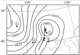 2、单选题 下图为某日08时海平面气压分布图(单位:百帕),读图完成下列问题。