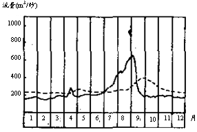 1.修建水库能调节河流径流量的季节变化,故图示虚线表示的径流量的季节变化小,应表示修建水库后,而实线表示修建水库前的河流径流量,该河流在春季和夏季形成两个汛期,故判断该河流位于东北地区,受春季积雪融水和夏季降水而形成双汛。