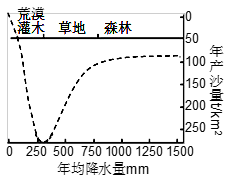 C.图中产沙量最大地区是因为植被覆盖率较低,降水变率大,易出现较强降水