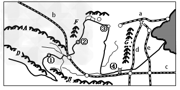 (2)山脉G东侧的地形单元名称为_________,西侧的地形单元名称为__________。