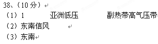 (3)能为我国东部地区带来较多降水的是东亚的夏季风(东南风)。