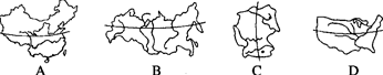 上图地形剖面图与以下四国所画剖面线相吻合的是
