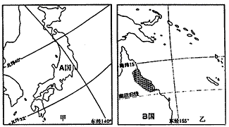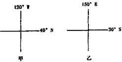 (2)甲;从两图经线上看,相同的实地距离,图上距离甲图大于乙图